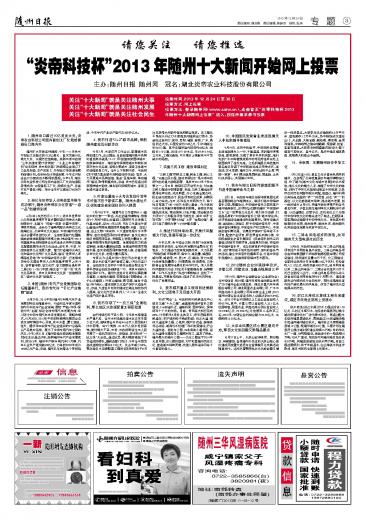 “炎帝科技杯”2013年随州十大新闻开始网上投票