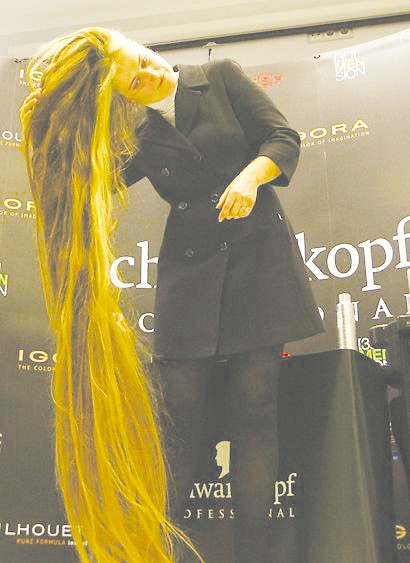 据悉,这名来自乌克兰基辅的女生名叫安娜(音),从小便留着头发始终不曾修剪过。经在场专家测定,她的头发总