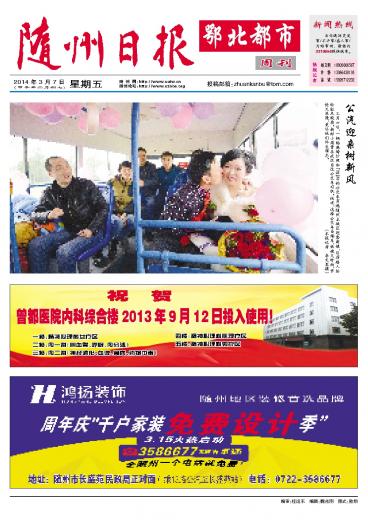 三月六日,一辆贴满婚纱照和“喜”字的公交车穿越随州主城区迎娶新娘,