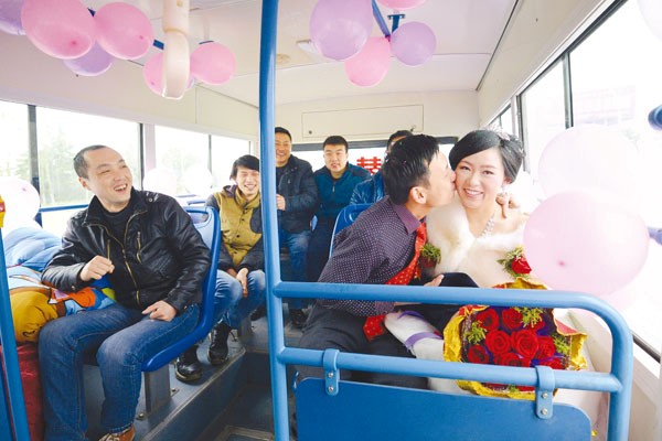 ,选择公交车当婚车,低碳又时尚,节俭又浪漫,更让他们终生难忘。