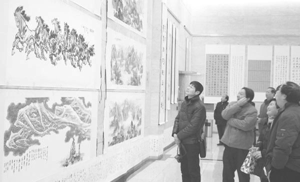 日前,“农行杯”13人书画展在随州博物馆展出,展出了我市13名书画名家的100多幅书画作品,吸引了众多游客。 (本报记者 徐 斌摄)