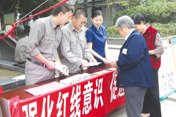 六月十六日,随州供电公司开展了以“强化红线意识、促进安全发展”为主题的“安全生产咨询日”活动。图为该公司进行安全用电宣传。(匡志鸿 郑毅摄)