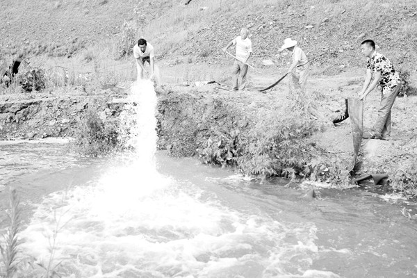 目前正值水稻打苞抽穗的关键时期,随县环潭镇柏树湾村2600亩水稻受旱严重。该村村委会及时安排组织每天24小时不间断从黑屋湾水库2级提水抗旱。 (本报记者 李文军摄)