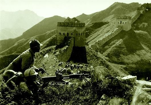 古老的万里长城,处处残破、颓圮,而一道由中华儿女用血肉筑成的团结的长城、自强的长城,在群山间屹立,在大地上横亘。