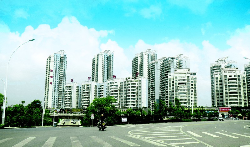 连日来,我市城区空气通透,一栋栋高楼在蓝天白云的映衬下分外漂亮。 (记者 孙洪涛摄)