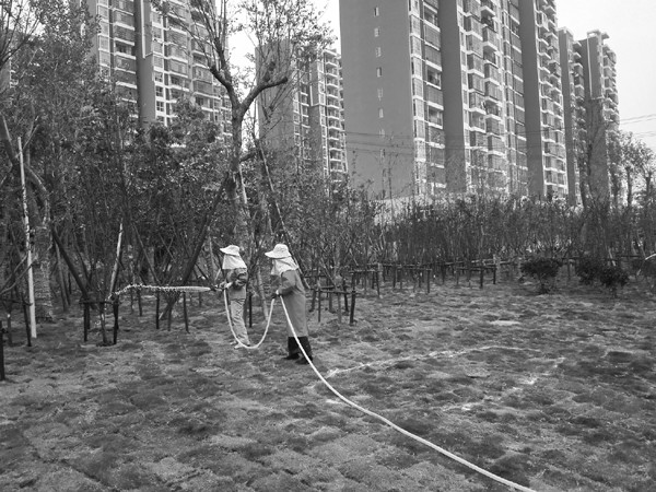 连日来,气温攀升,市园林部门安排工作人员对园林绿化浇水“降温”,保障绿化苗木“平安”度夏。(本报记者 冯家园 通讯员 刘红元 摄)