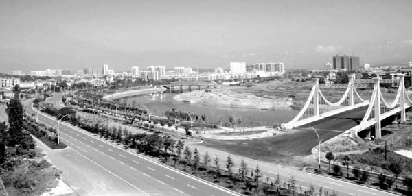 而与之相应的是,府河两岸工程已经启动,神农大道、白云大道等路基向南推进,部分地段的滨湖游路已经形成。上半年,高新区启动道路建设9条,总长度26.7公里,投入资金3亿元,其中神农大道(淅河段)、漂水西路、青春路等基本完工;绕城南路、交通大道扩改(淅河段)、淅大路、解放东路、漂水东路等全力推进,拟定年底前交付使用。投资3200万元建设的淅孛大桥已经实现通车,府河上又增加了一条跨河通道。投资800余万元对五星路、文帝大道、车城路进行绿化,增加绿化面积9万平方米。