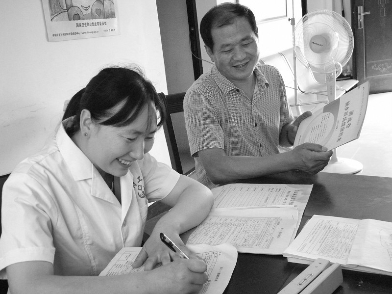 随县加强城乡居民六大重点人群的健康档案登记工作,落实十二项公共服务措施,保障城乡居民身体健康。图为该县厉山镇三里村卫生室保障员汪凤梅正在询问登记村民健康状况。(本报记者李文军通讯员龚承斌摄)