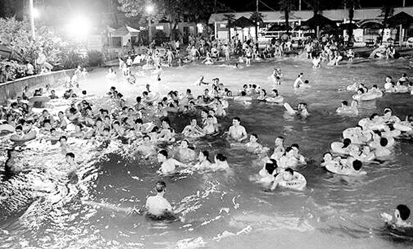 连续高温,市民扎堆涌入体育公园水上乐园戏水。 (记者 李文军摄)
