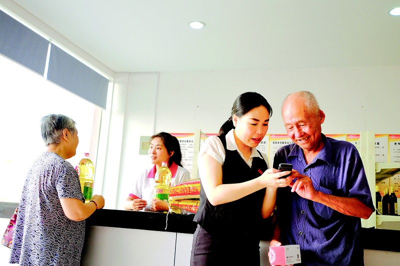曾都区东城办事处天后宫社区通过开展党建促进社区营造和谐安全氛围。图为该社区为老年人免费发放老年手机和帮扶物资。 (记者 李文军摄)