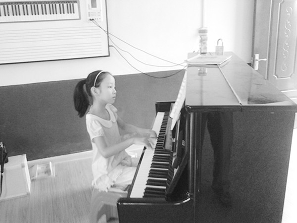 暑假以来,随县小林一中的乡村少年宫免费开设钢琴、篮球、乒乓球等兴趣班,以培养留守儿童的兴趣爱好,让他们过一个健康快乐的暑假。图为在小林一中乡村少年宫音乐教室内,一个小女孩正在老师的指导下学弹钢琴。 (通讯员 喻先富摄)