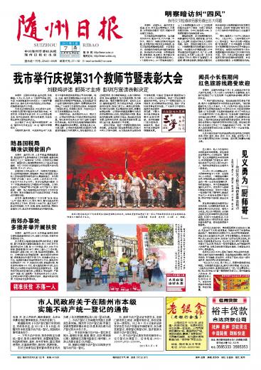本报讯 记者张琴报道:金风送爽,丹桂飘香。9月6日,在第31个教师节来临之际,市委、市政府隆重举行庆祝第31个教师节暨表彰大会,表彰在我市教育战线上无私奉献、成绩显著的教育工作者。