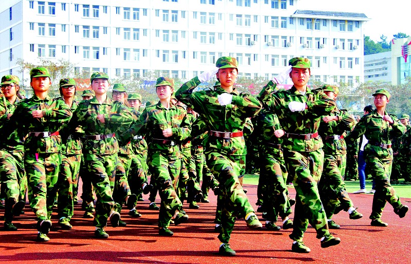 9月1日至15日,预备役工兵团组织随州职业技术学院2100名大一新生进行了为期15天的军训和国防教育,图为学生正在进行正步走训练。 (记者 徐 斌 通讯员 刘 高摄)