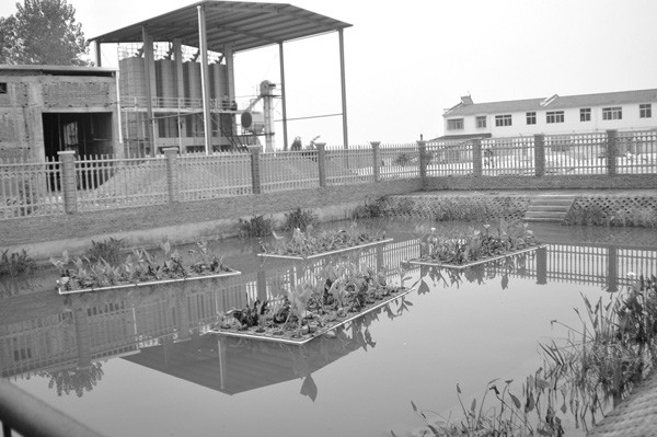随县安居镇在农村环境连片整治活动中,先后对张畈村等进行了示范性堰塘污水生物化处理。图为该村农村堰塘通过投置人工生物浮岛改善水质的情景。 (记者 陈德友 通讯员 汪家国摄)