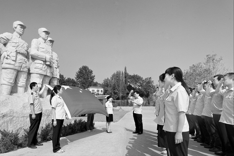 国庆前夕,市中级人民法院组织干警到曾都区洛阳镇九口堰新四军第五师纪念园重温法官誓词,参观新四军第五师战斗事迹图片展,进行革命传统教育。 (记者 徐斌 通讯员 李永强 摄)