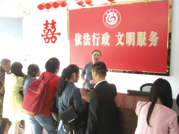 图为婚姻登记处工作人员忙碌的情景 本报记者 聂忠城 摄