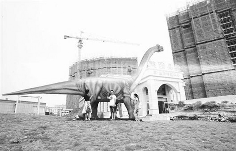 9月25日至10月20日,一批来自四川自贡的恐龙模型亮相于解放东路的随园嘉墅家·生活体验中心广场,带您“穿越”到一亿六千万年前侏罗纪恐龙世界。 (谢三强 摄)
