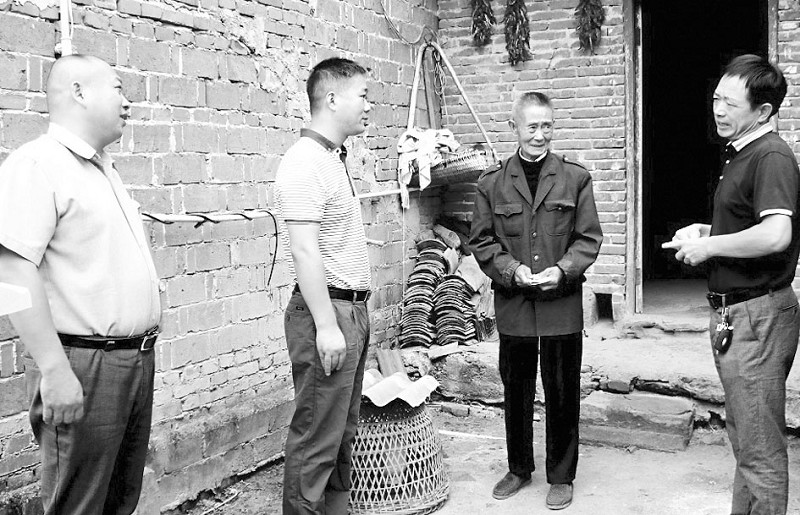 日前,随州高新区国土分局党支部书记、局长曾晖一行,来到淅河镇挑水村,走访慰问该村两名特困党员,各送去500元帮扶资金,以解决他们实际困难。(通讯员 徐全国摄)