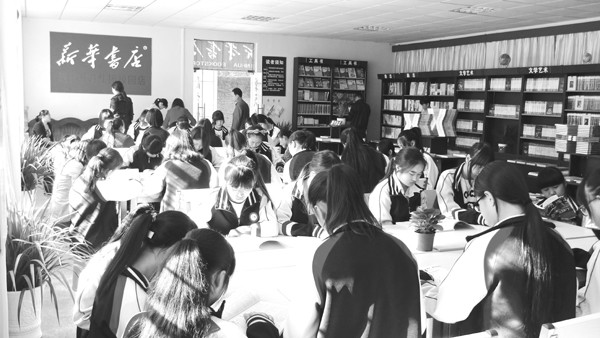 新华书店集团随州市分公司与现代教育集团联合开办的“新华书店现代教育集团店”日前在随州8中开业,校园店的成立,为全校师生购书、阅读提供了一个良好的场所。 (记者 孙洪涛摄)