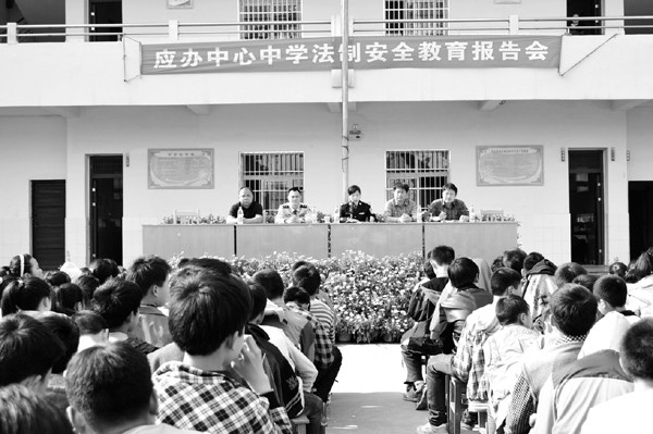 10月16日,应山派出所民警走进应山办事处中心中学,通过以案说法、心理咨询等多种形式,拉开“送法入校,共创安全”普法活动序幕,进一步提高学生法律意识,促进校园安全。 (通讯员 付晓东摄)