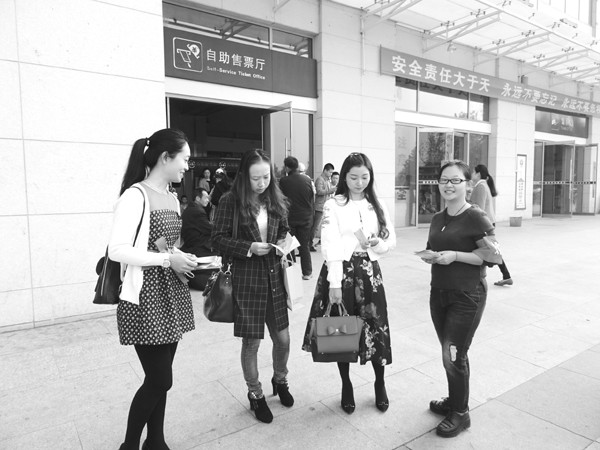 入秋以来,曾都区林业局高度重视山火防控工作,先后多次组织人员在城区各大广场对群众进行山林防火知识宣传,增强群众在林区安全防火意识。图为10月26日该局文明志愿者在新火车站对旅客发放《文明旅游宣传手册》。