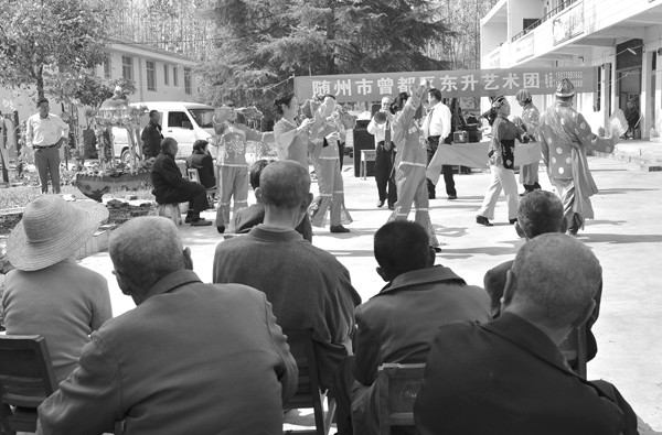 日前,曾都区东升艺术团来到随州高新区淅河镇福利院慰问孤寡老人,给老人们带去了精彩的文艺节目。(记者 孙洪涛 通讯员 王 涛摄)
