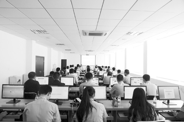 为扎实推进公安基础信息化建设,市公安局围绕治安防控、破案追逃、信息查询等基础业务,设计模拟案例,组织开展全警“大比武”活动。图为参赛民警在微机上实战演练。 (通讯员 常军摄)