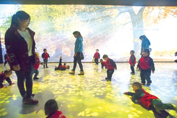 规划展览馆的3D影像让人如身临其境,深受市民欢迎。图为11月4日,一群幼儿园的小朋友被眼前的银杏谷美景吸引。(记者 徐斌摄)