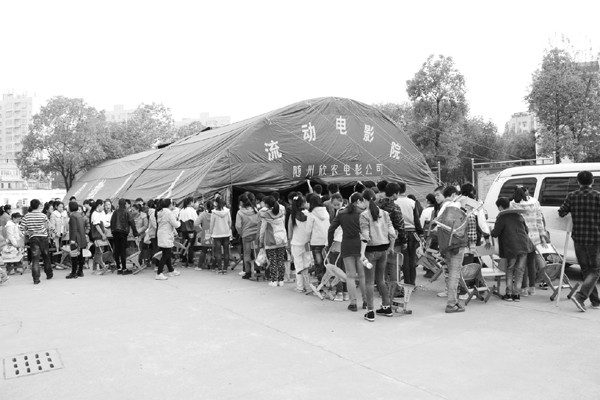 近日,为营造纪念中国人民抗战胜利暨世界反法西斯胜利70周年的良好氛围,对学生加强爱国主义教育,曾都区文峰学校组织学生观看电影《百团大战》。图为随州欣农电影公司流动影院走进曾都区文峰学校为学生们放电影。 (通讯员 王 力摄)