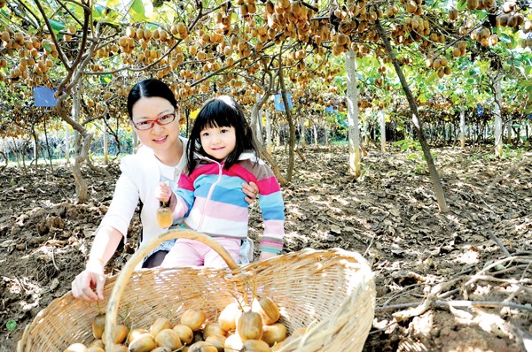 随县万和镇以“合作社+农户+基地”模式引导农民发展猕猴桃产业,帮助农民增收。图为游客在猕猴桃基地采摘猕猴桃。(记者 孙洪涛 通讯员 韩铁流摄)