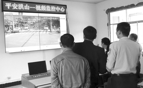 近年来,随县洪山镇注重科技投入,在公安、交警的支持下,先后投入20多万元在镇区主要路口、主要街道、重点区域 (单位)安装35个A类探头,9个球形机,基本实现镇区视频监控设备全覆盖。这些科技产品的投入,有效地遏制了交通事故、治安案件发案率。图为公安民警在查看视频监控统一平台。(通讯员 王大群戴玉平摄)
