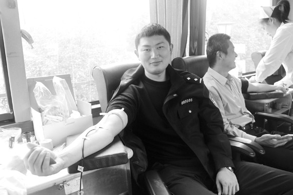 湖北随州特警积极参与慈善义举活动,慷概捐献自己的血液,拯救需要帮助的人。图为11月5日,随州特警正在义务献血。 (通讯员 程昆 刘智明摄)