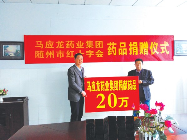 11月4日,马应龙药业集团、省红十字会、市红十字会相关领导,来到随县中医医院举行了药品捐赠仪式,马应龙药业集团向随县共捐赠了价值20万的药品。 (通讯员 徐晓莉摄)