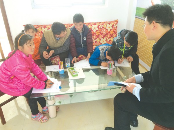 曾都区在农村行政村建立一批留守儿童服务站,为留守儿童提供学习、娱乐场所。图为万店镇夹子沟村留守儿童服务站内,青年干部为留守儿童作课业辅导。(记者 唐天才 通讯员 李婉莺摄)