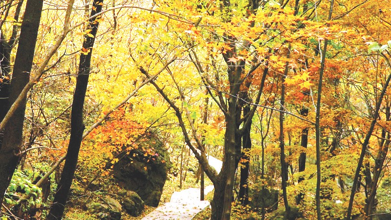 每年11月至12月初,大洪山层林尽染,红叶黄叶遍布山野,迎来一年中最美的时刻。这里有红叶黄叶各种叶,绝对让你眼花缭乱,一次看个够!与其它地方不同,大洪山的秋季红叶各种色彩搭配恰到好处、五彩斑斓,而不是那种普遍的、单一的红。一年四季不变的松树、柏树等常绿树是所有色彩的背景色,而由银杏等其他植物的红、黄、白点缀,各种色彩相互辉映,好一幅水墨彩画,如果你置身其中,定能感受到震撼人心的美丽,漫步其中,又仿佛进入一个梦幻般的童话世界。