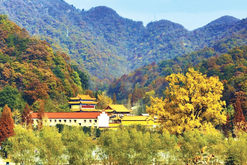 赏叶赏够了以为就完了吗?如果还没玩尽兴,不妨到大洪山的著名景点慈恩寺的金顶去一遭。“金顶”是慈恩寺的标志性建筑,占地面积1000平方米,整体高度45米,金顶高度15.9米,非常壮观。