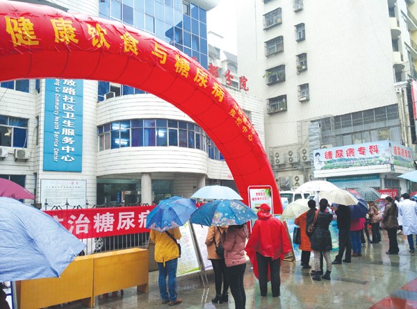 11月14日是第九个 “联合国糖尿病日”,12日上午,曾都医院糖尿病科在解放路社区卫生服务中心门前举行糖尿病义诊活动,向广大人民群众宣传糖尿病科普知识,吸引市民们冒雨前往咨询。当日免费发放健康教育宣传资料10余个品种500余份,免费测血压和血糖各100余人次。(通讯员 尚明江 刘良春摄)