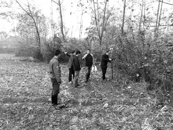 ←11月10日下午,接到随县安居镇张家井湾村武十高铁临时用地勘测任务,随县国土勘测规划院工作人员,冒雨赶赴征地现场,进行实地勘测,为项目早开工提供了有力保障。(通讯员 周海燕摄)