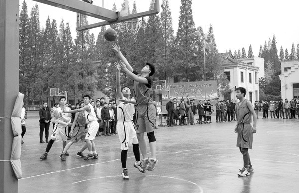 日前,曾都区举行第一届中小学生球类运动会,图为篮球比赛现场。 (记者 徐 斌摄)