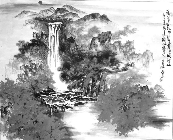 万道霞光映山河(国画)
