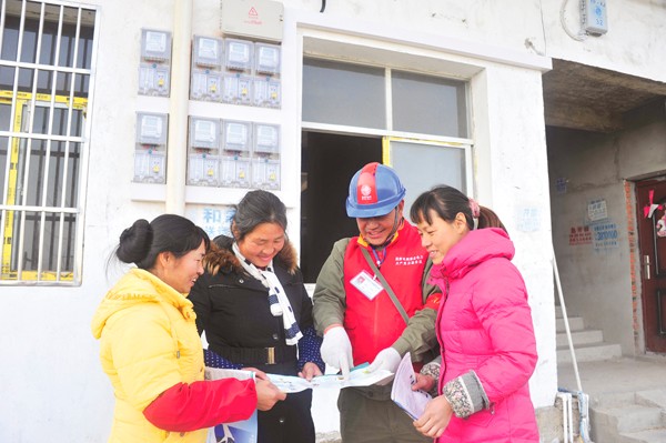 广水市供电公司太平供电所员工在太平镇朝阳村,向村民宣传推广“智能电管家”。截至2015年12月下旬,广水市供电公司共签约“智能电管家”用户17.4万户,完成计划指标145%。(通讯员 杨雪萍 景凯摄)