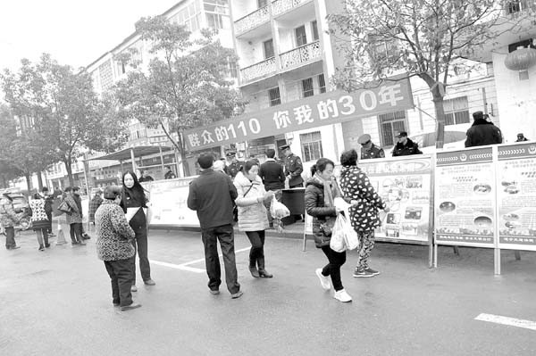 1月10日,随县公安局指挥中心联合随县交警、消防、巡逻、法制等警种部门,在厉山镇天星街集中开展“110”宣传活动。据悉,当日共摆放宣传展板10块,悬挂横幅5条,发放宣传单3000余份。(记者 黄闯 通讯员 刘慧摄)