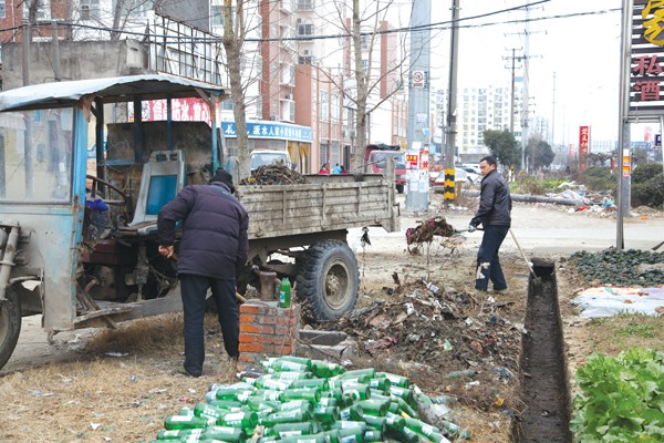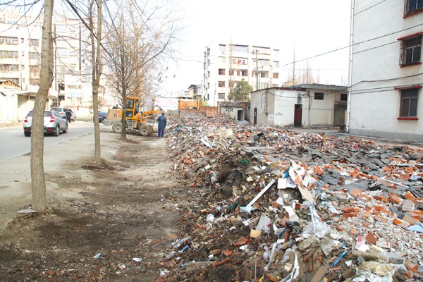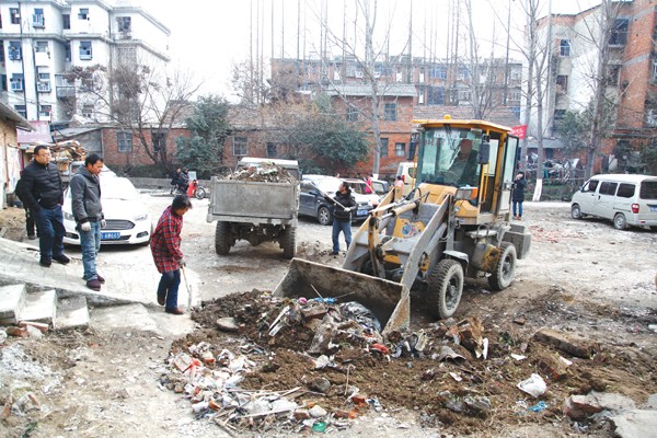 ⑤曾都区北郊办事处八里岔社区清理明珠路旁建筑垃圾