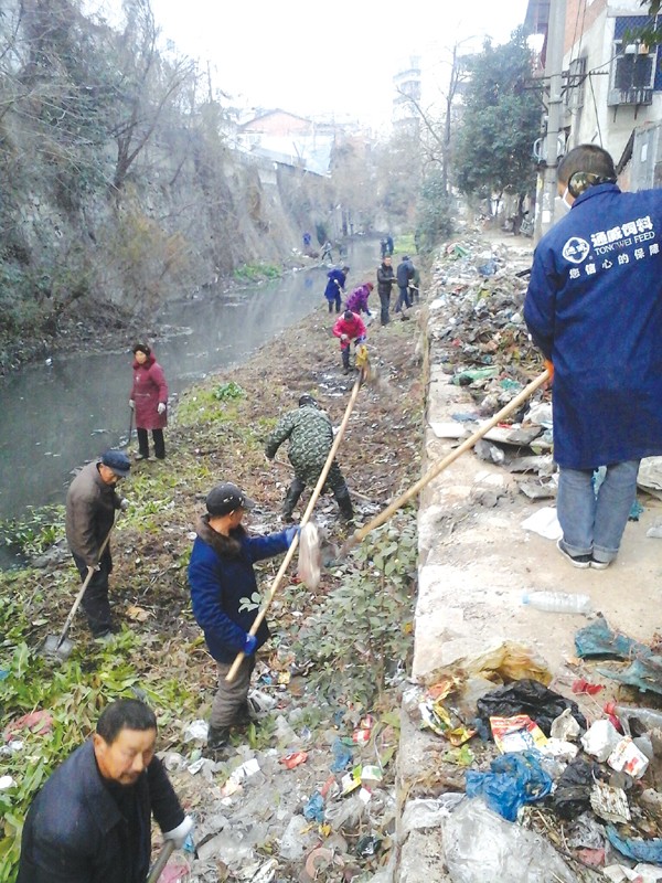 ④市排水处组织人员清理东护城河的杂物