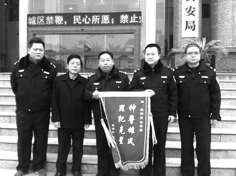 昨日上午,随州城区1·15特大绑架案受害人家属将一面书有“神警雄风、罪犯克星”的锦旗送到市公安局,表达对公安干警深深的敬意。