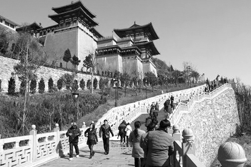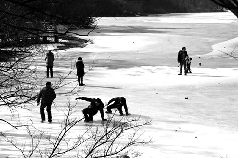 春节期间,大洪山风景区游人如织。上图为来自省内外的游客在大洪山游玩。下图为游客们在大洪山白龙池结冰的冰面上行走,其乐无穷。(记者 孙洪涛 摄)