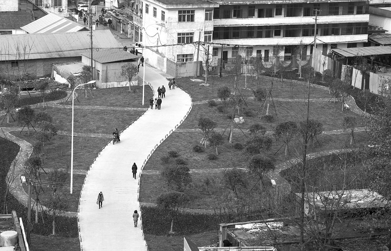老火车站铁路天桥拆除后,建起了一片小游园,深受周边群众欢迎。(记者 徐斌 摄)