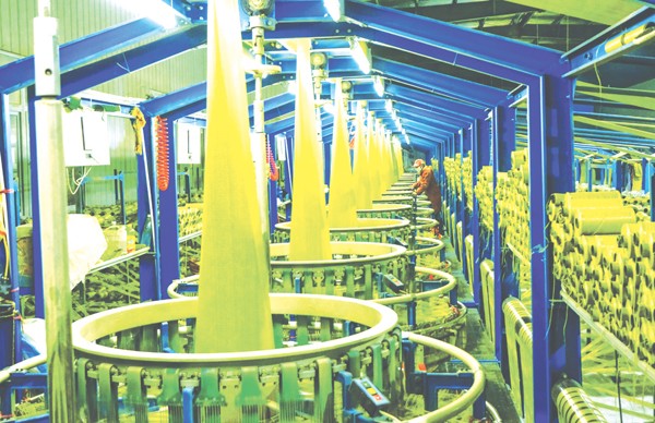 金环实业有限公司2015年投资1.3亿元建成我市最大的自动化塑料编制袋生产线,节后生产呈现一片繁忙景象。 (记者 李文军 摄)