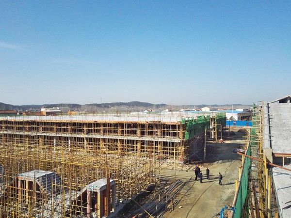 随州农副产品物流园启动以来,工程进展顺利,已建成两栋门面楼和市场。昨日,施工队伍已进场,抓紧施工。(记者 冯家园 摄)