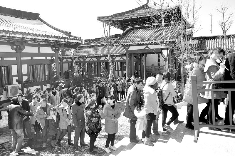 慈恩寺里,彩旗飞扬,灯笼高挂,梵音阵阵,香烟袅袅,一派祥和的景象。四方游客礼佛敬香、登高望远,不亦乐乎。为方便信众礼佛,新春之际,慈恩寺还为广大游客准备了丰盛的免费午餐斋饭,众多游客信众美美地体验了一把斋饭。